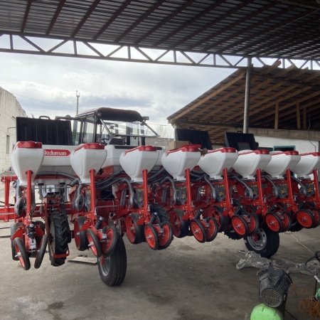 Ozduman HVMD — универсальные пневматические сеялки предназначены для точного высева калиброванных семян кукурузы, подсолнечника, клещевины, сорго, сои, а так же семян кормовых бобов, фасоли, люпина с одновременным, раздельным от семян внесением гранулированных минеральных удобрений дисковым сошником и прикатыванием почвы V-образными катками в рядках.
